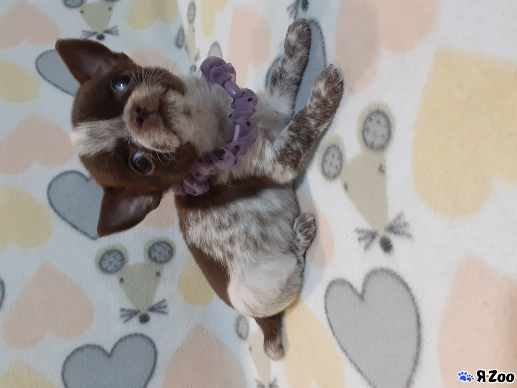 Длинношерстный чихуахуа красивого редкого серорозового окраса с голубыми глазами, привит, можно гулять уже,полностью готов к новой семье, общительный и ласковый, приучен
