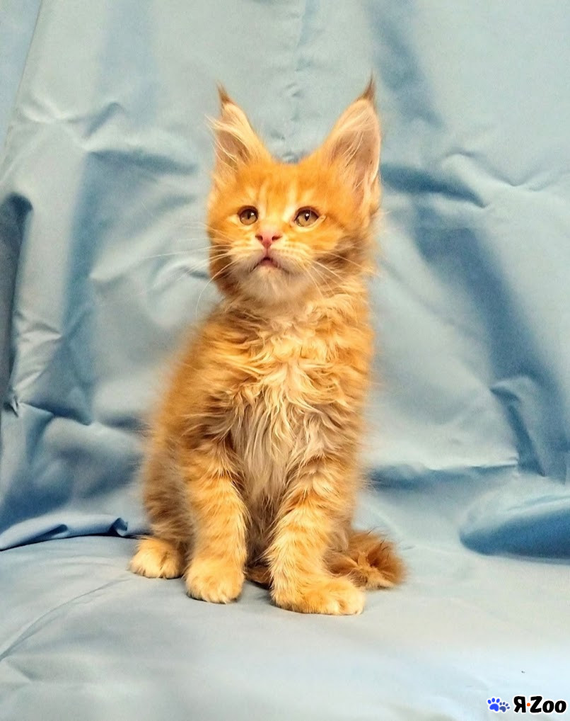 Четырёхмесячный рыжий мейн-кун — это идеальный питомец, сочетающий мощь и ласку, в этом возрасте он уже привит, социально адаптирован, приучен к лотку и когтеточке