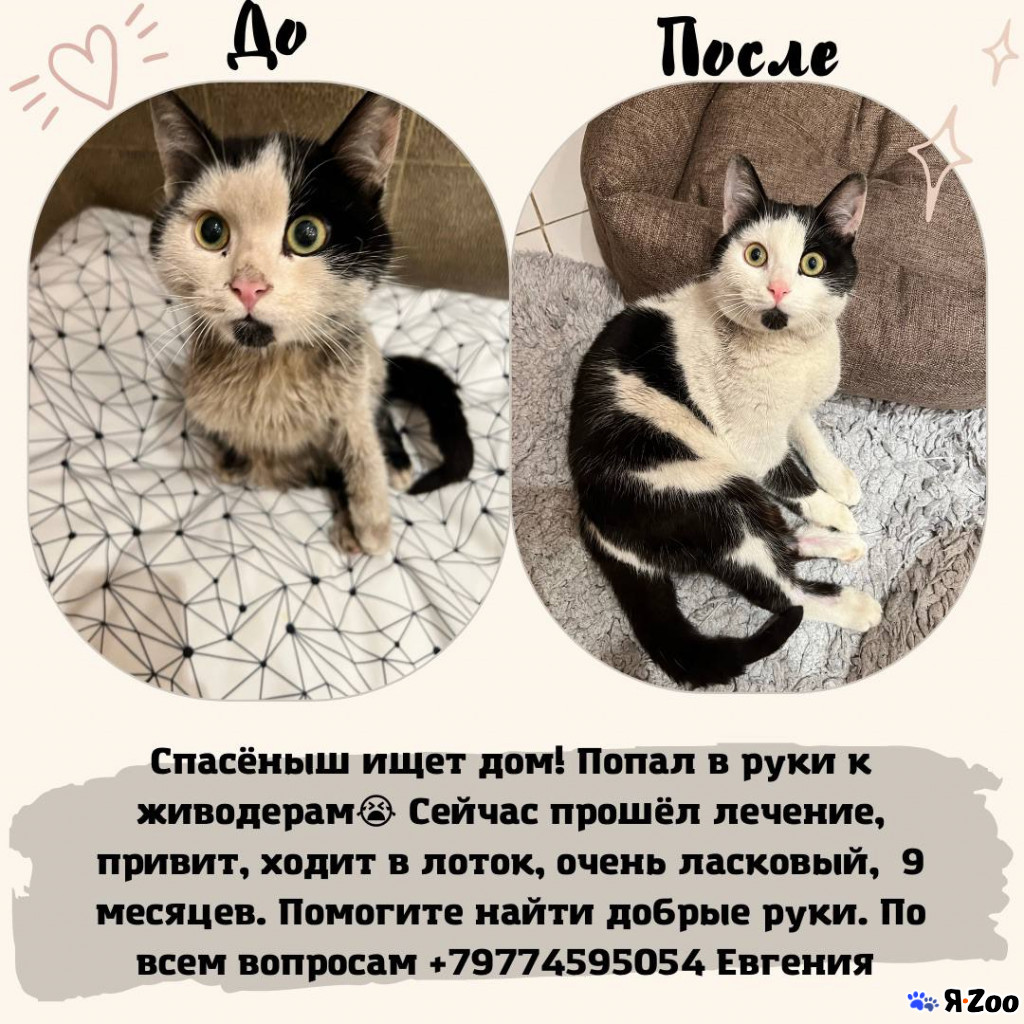 История такая: подобрали сильно раненного кота на улице, выходили, вылечили, теперь кот здоров и нуждается в хозяине. У моей супруги, к сожалению, очень суровые аллергические приступы на его шерсть.У кота есть прививка и все анализы, он здоров, есть паспорт, кастрирован, ходит в лоток. Мальчик, 9-10 месяцев. Очень ласковый, любит людей, уважительно относится к маленьким и средним породам собак. Это кот-друг, кот-компаньон