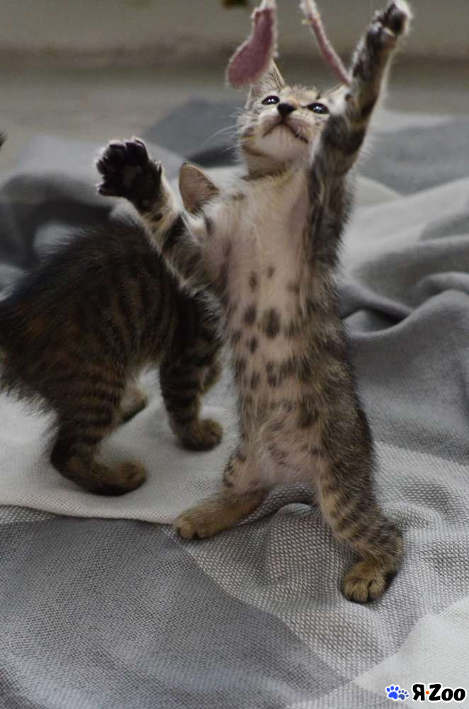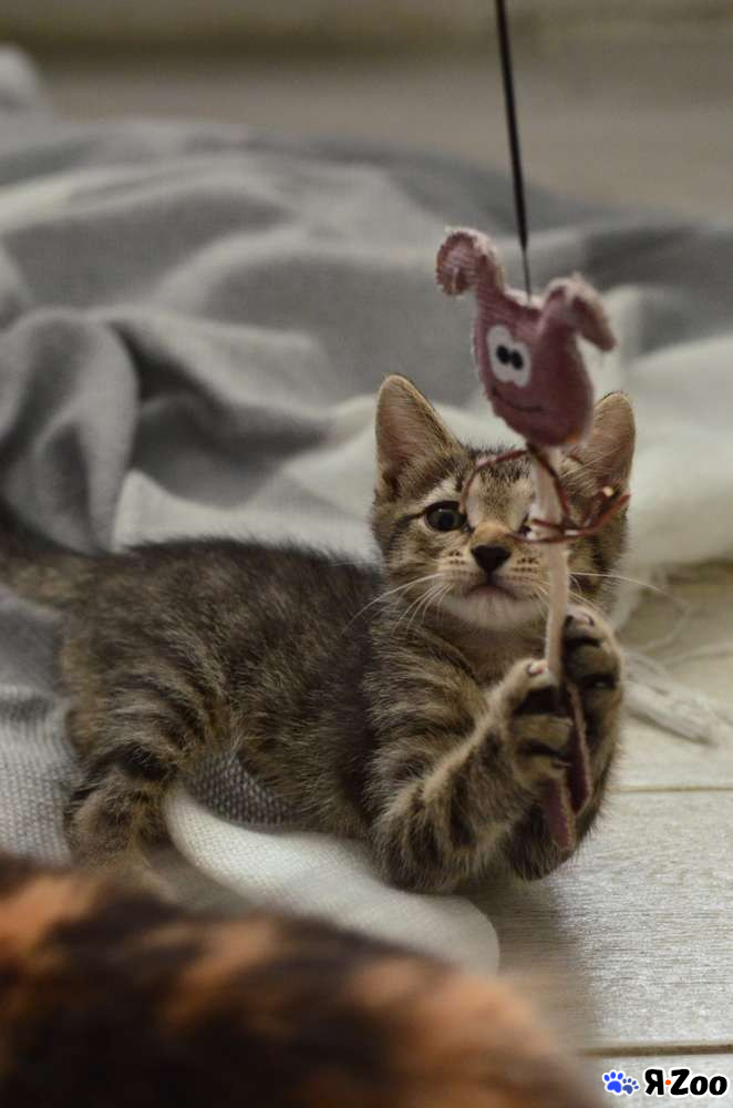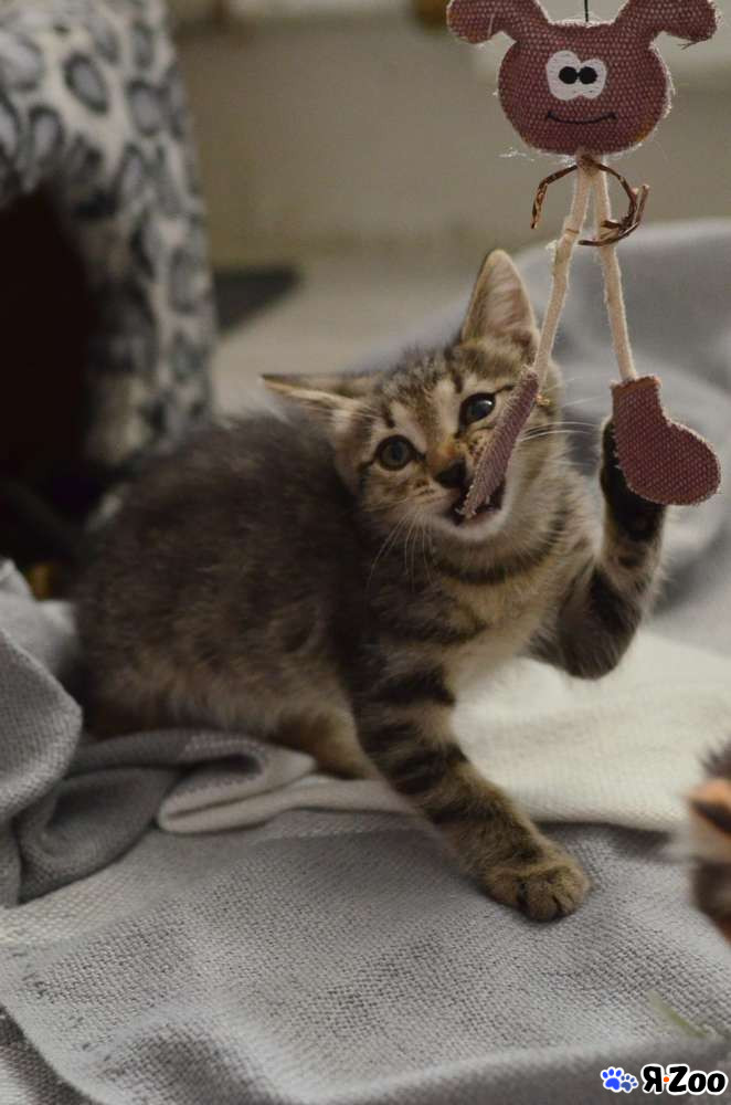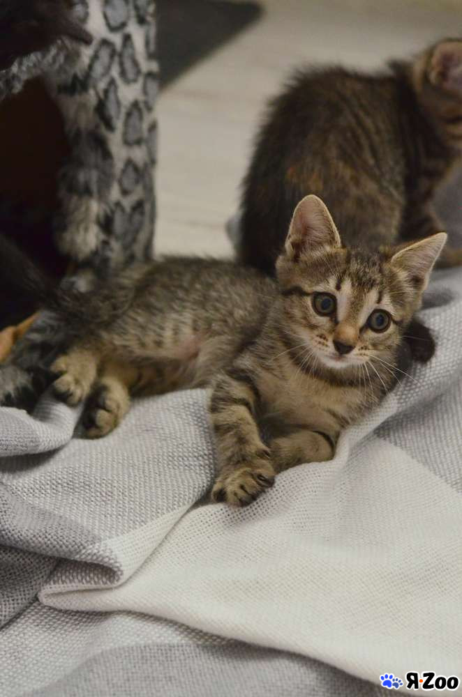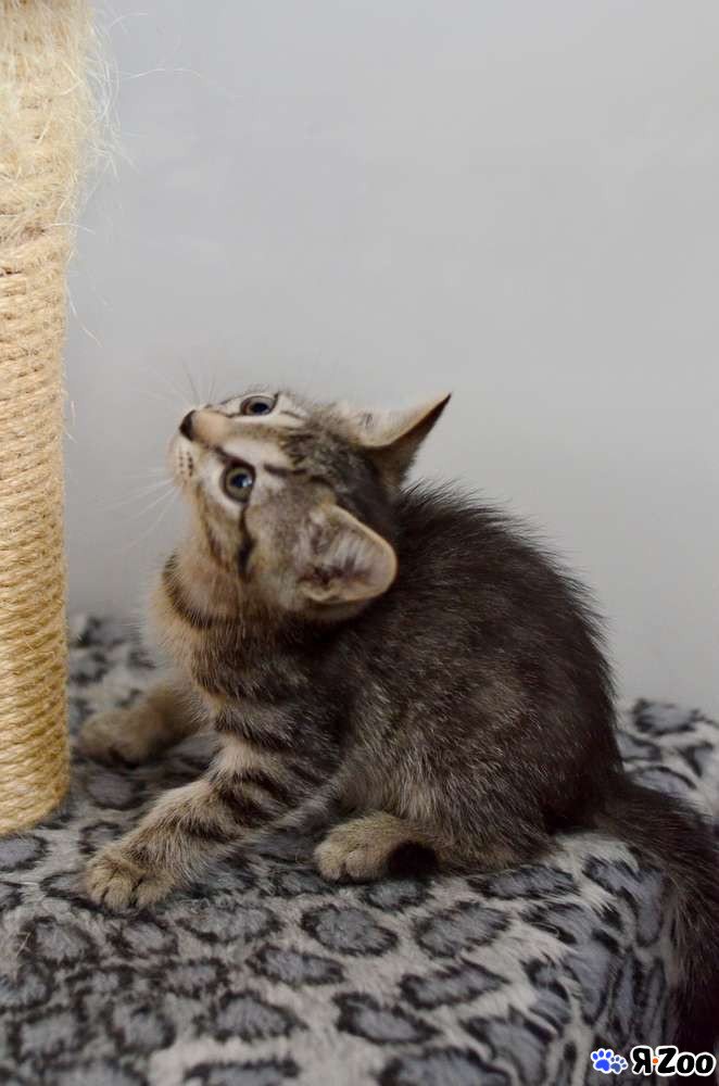 Малыш уже подрос, ему 2 месяца. Активно хулиганит и изучает мир. Очень любознательный и смелый, самый первый бежит изучать новую игрушку, дразнилку, мячик. Мячики гонять особенно любит. Но в то же время очень контактный и тактильный, сидит на ручках и с любопытством разглядывает людей.
