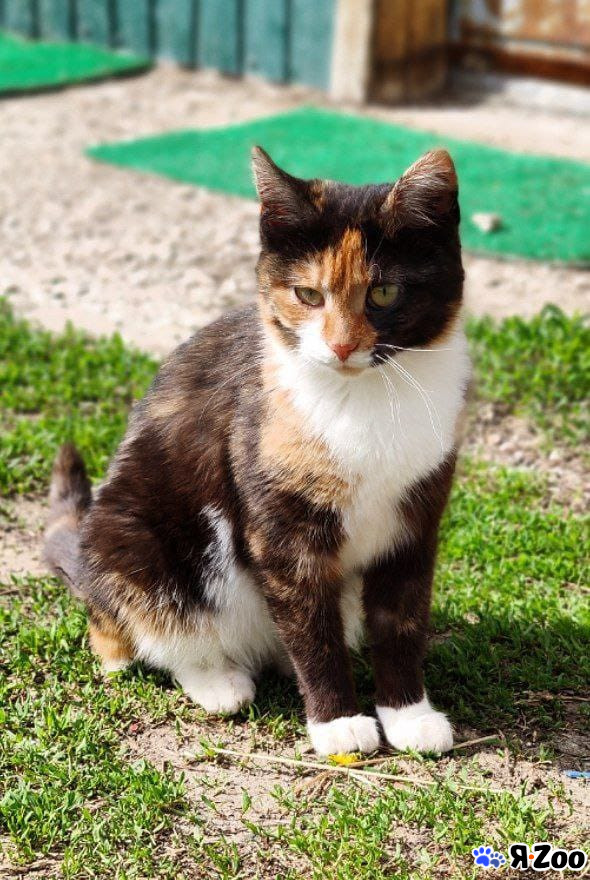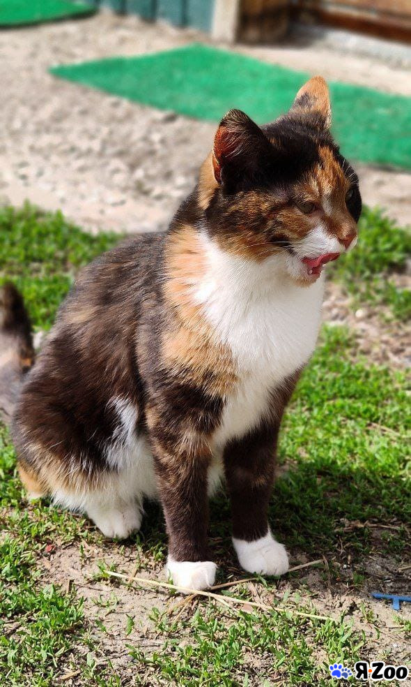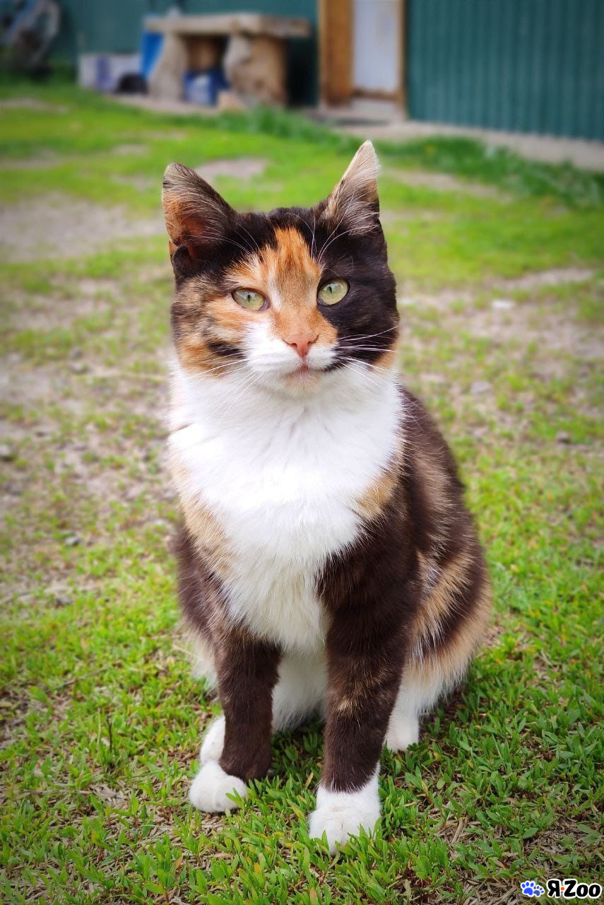 Трехцветная кошка. Зовут Няша. Возраст примерно год и 5 месяцев. Обработана от паразитов.