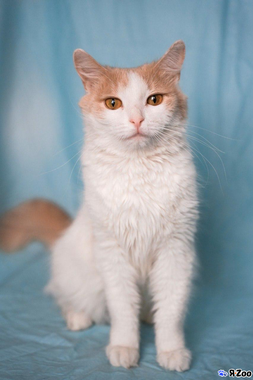 Очаровательная кошечка с глазами чайного цвета и шелковистой полудлинной шерстью.