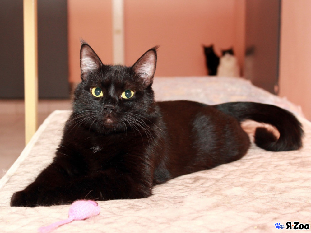 Жермон — ласковый, общительный, хорошо воспитанный молодой котик, любит, чтобы его гладили, с интересом наблюдает за людьми, рад поиграть, если с ним играет человек
