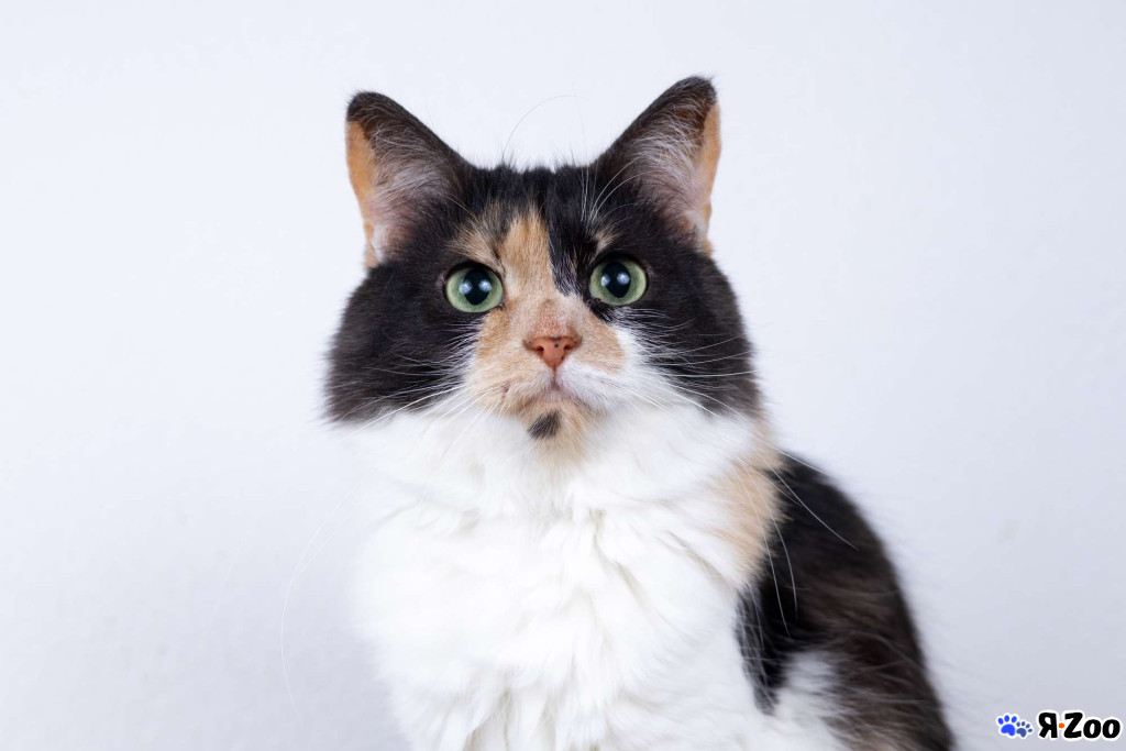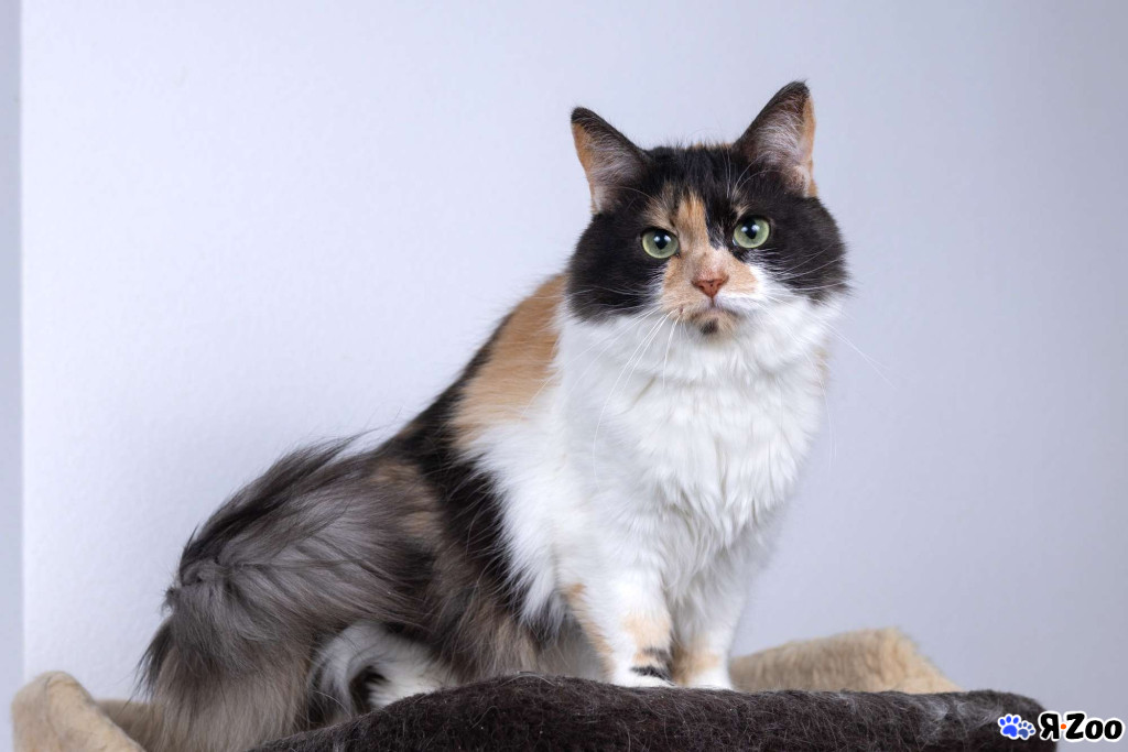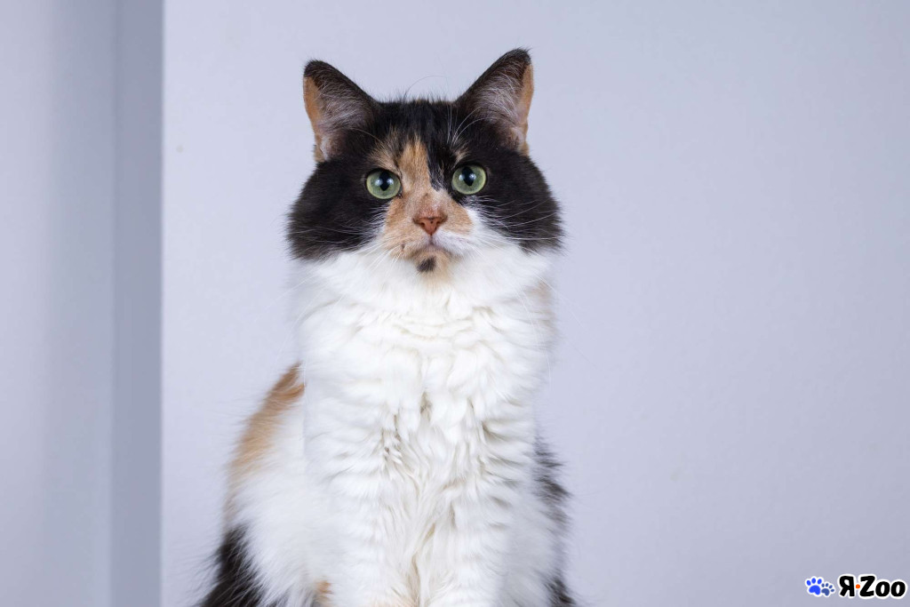 Сибирская яркая красивая трёхцветка липа, обладательница пушистой шубки с роскошным воротником и хвостом-пальмой, по характеру — спокойная, дружелюбная, ласковая