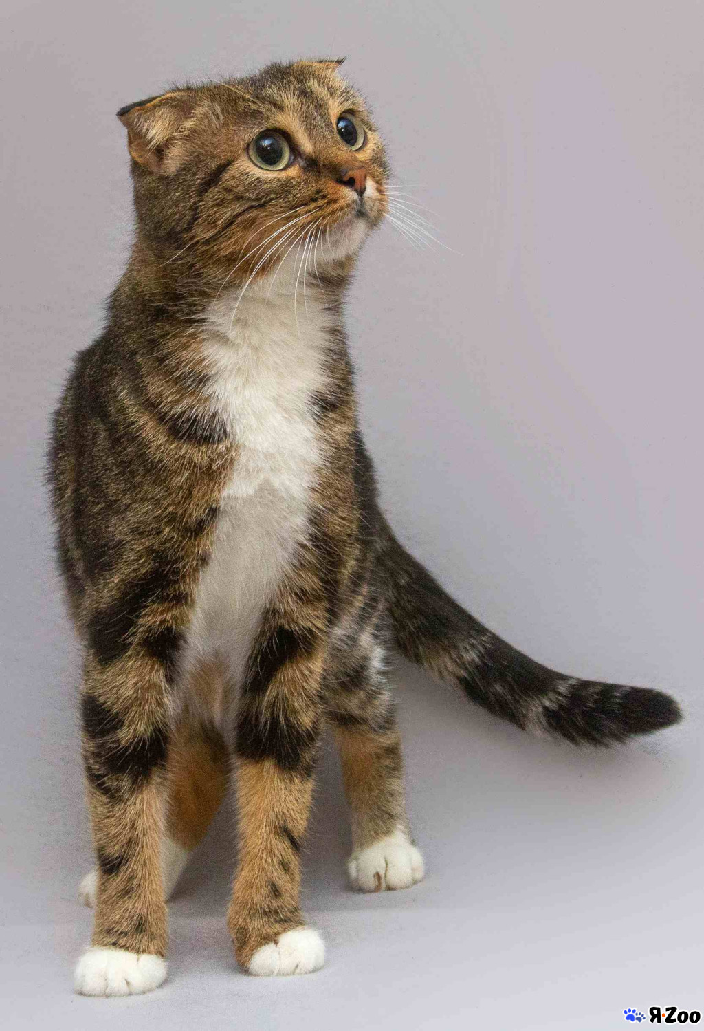 Порода: шотландский вислоухий белоснежный бархатный маугли – милый добряк, дружелюбный и забавный, он родился разноглазым, но в детстве лишился левого глазика, к счастью