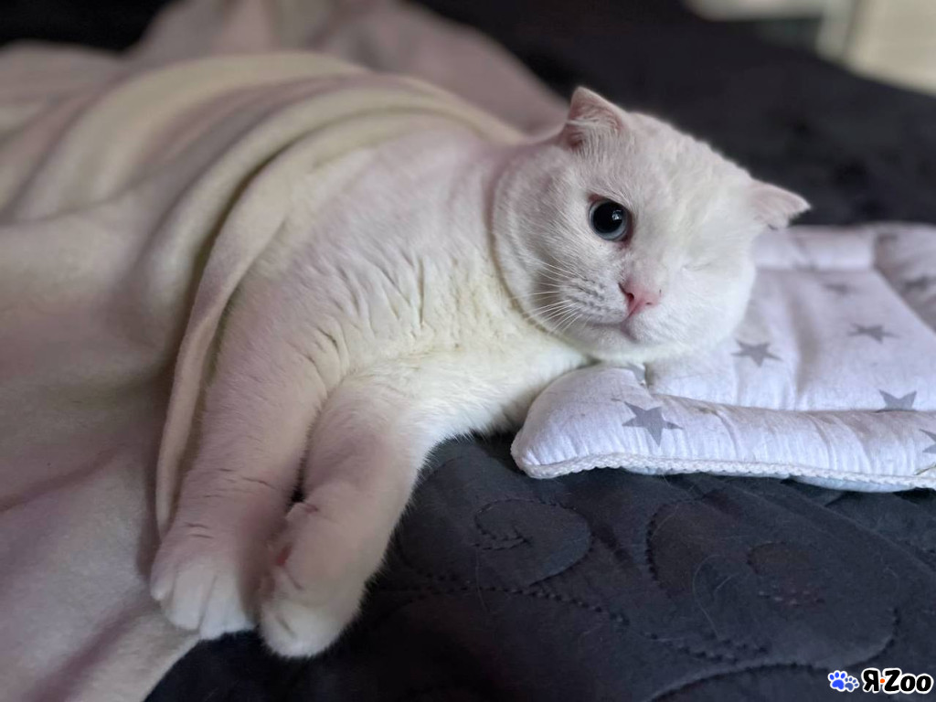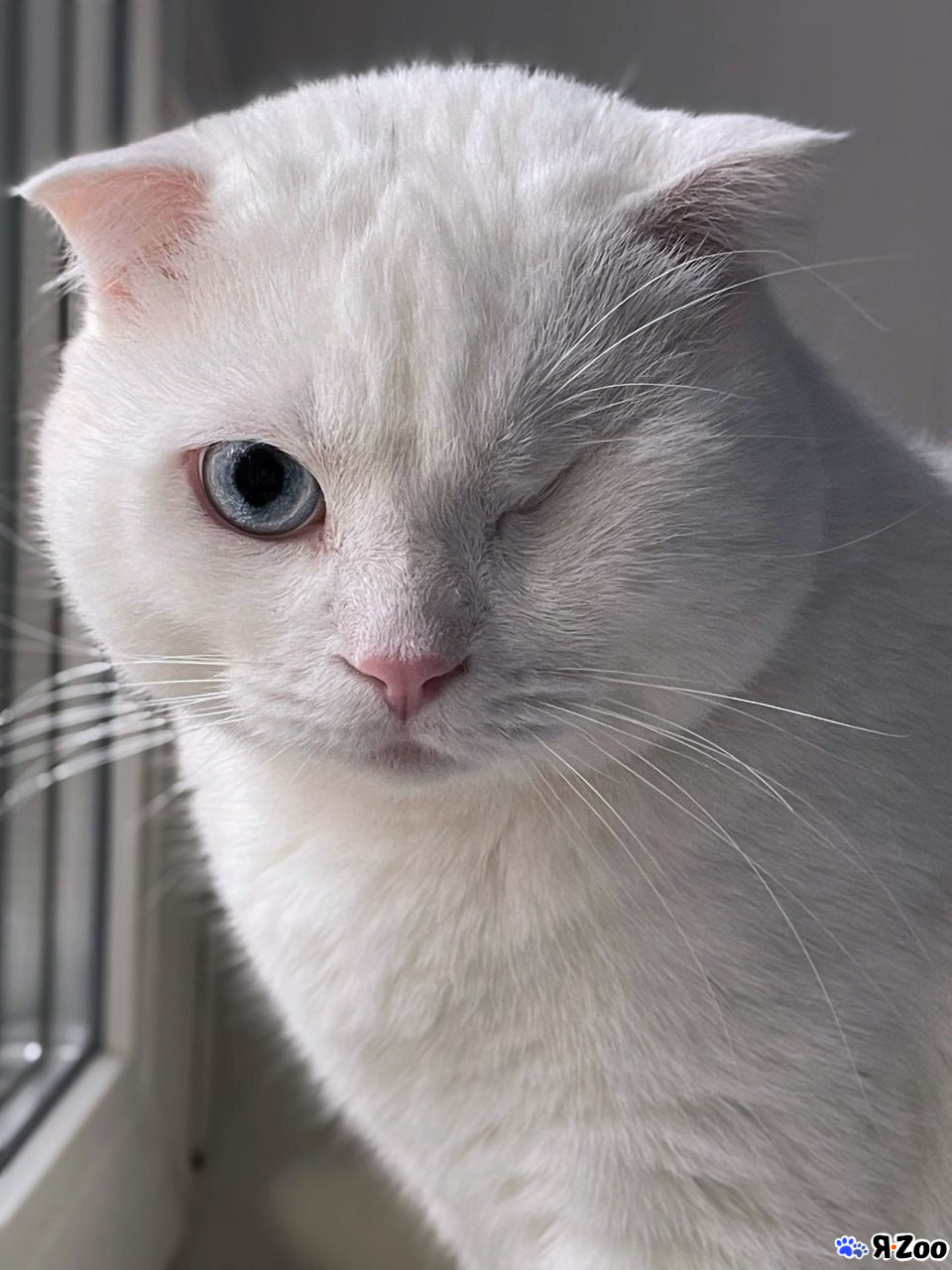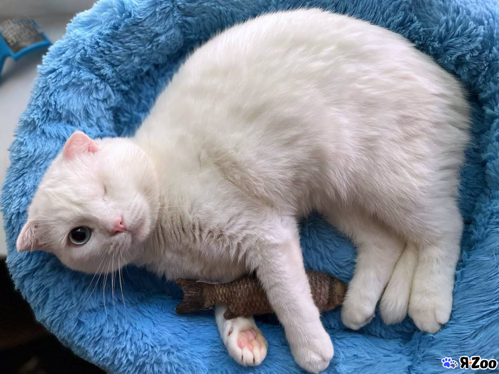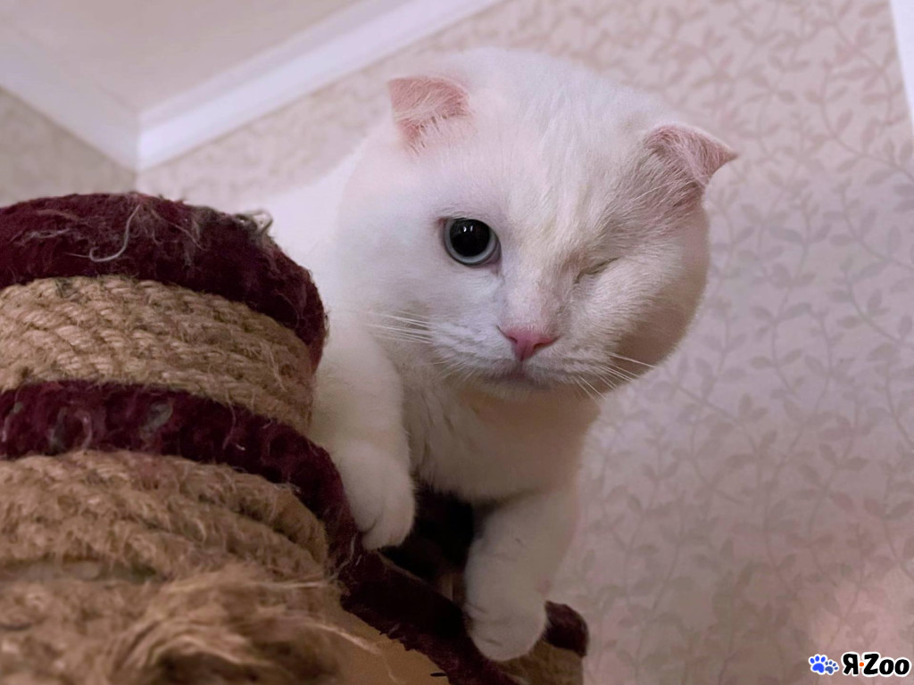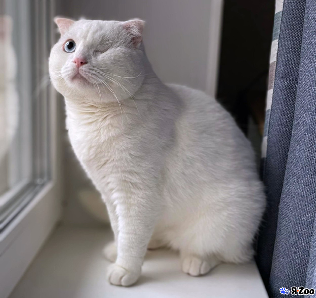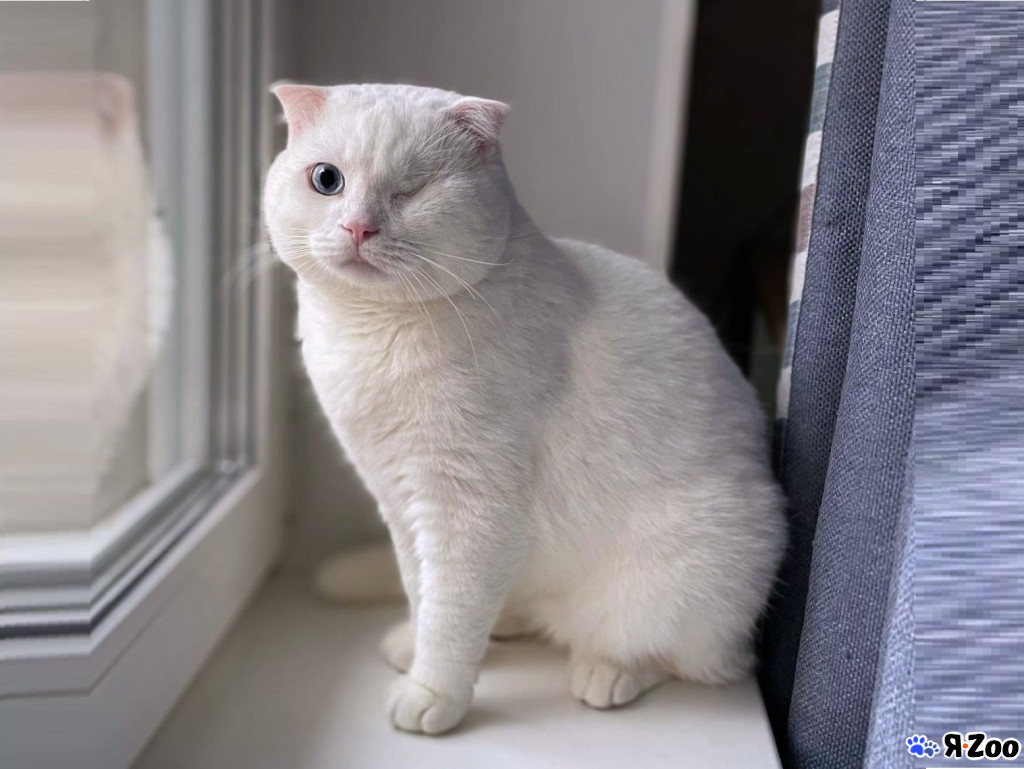 Порода: шотландский вислоухий белоснежный красавец эклер – милый пушистый добряк, он глухой, но это не мешает ему жить полноценной кошачьей жизнью, эклер – общительный