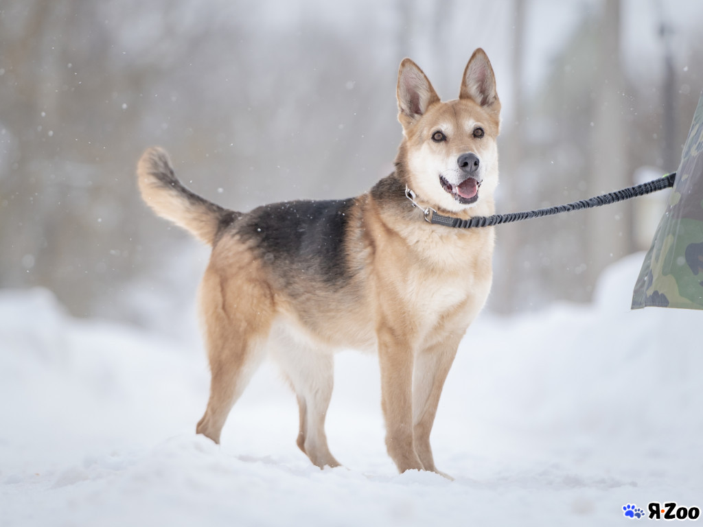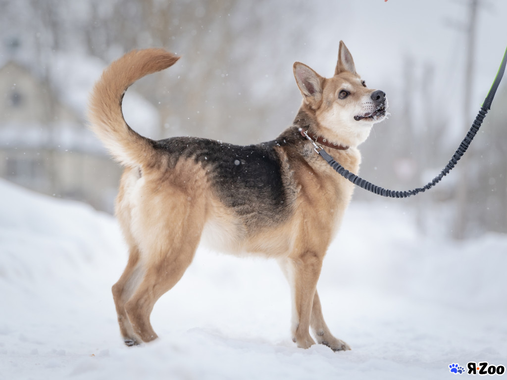 Возраст примерно три-четыре года, стерилизована, вакцинирована, от паразитов обработана. Вес 23кг, рост в холке по колено.