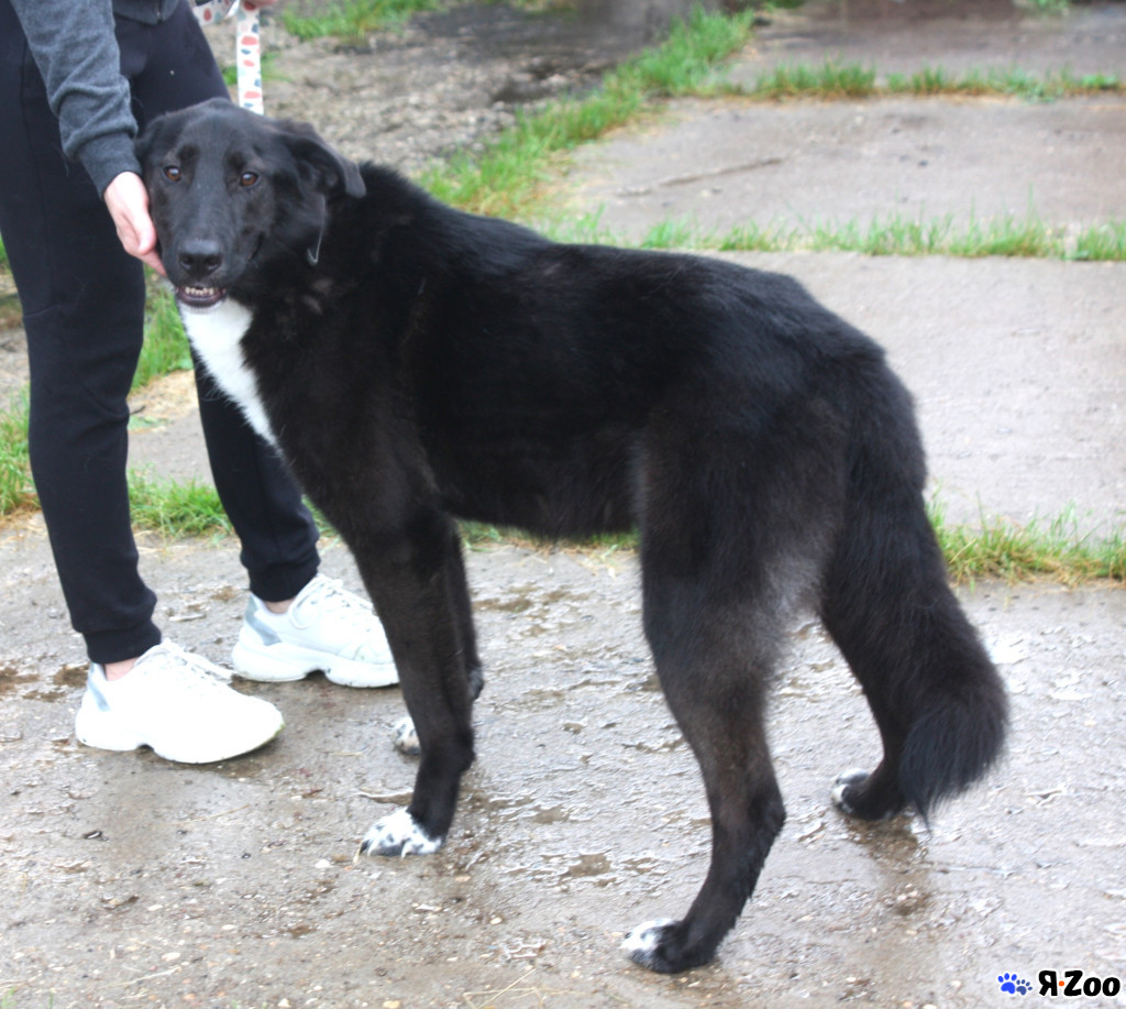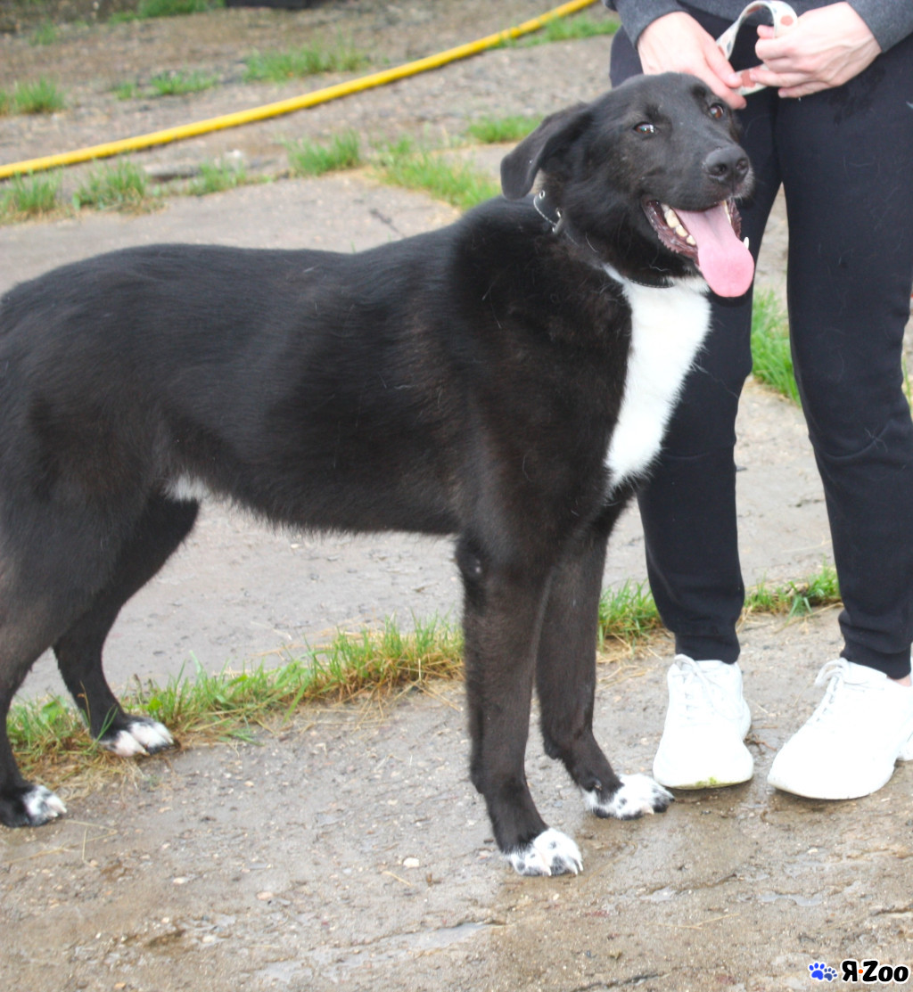 Он точно бывшедомашний, хорошо ходит на поводке и спокойно ведёт себя в машине.