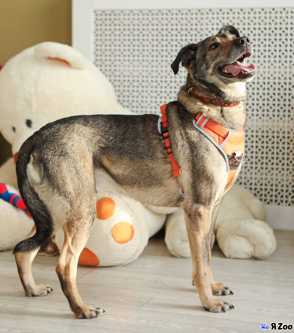 Морра гладкошерстная в темно-серых оттенках собака. Среднего размера, не крупная.