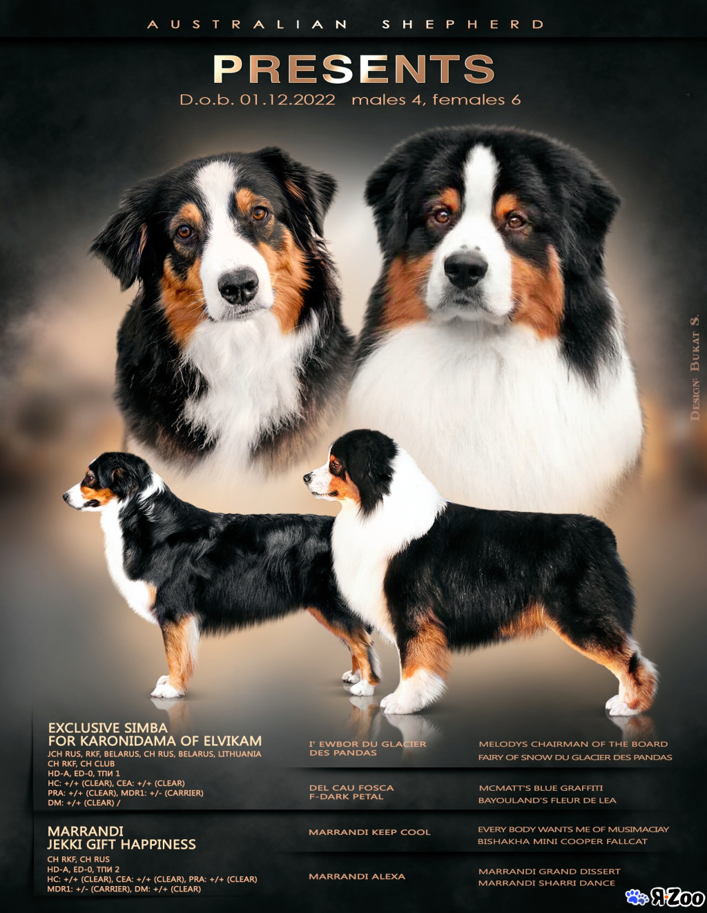 Малыши породы аусси, родились 8,11,2022- одна девочка- красный триколор, один мальчик- красный триколор, один мальчик-голубой мрамор и три мальчика-красный мрамор, папа барон