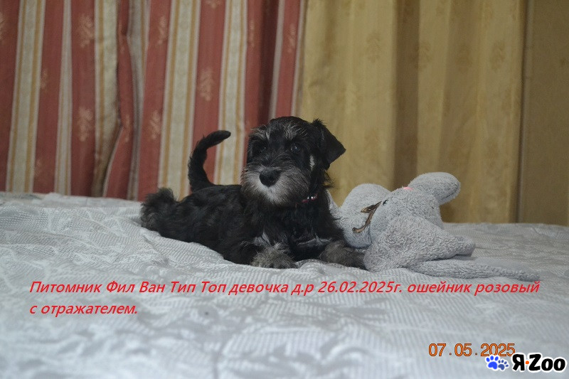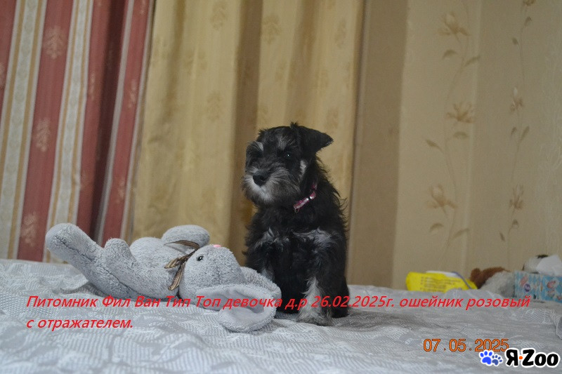 04 апреля 2026 года родился помет щенков цвергшнауцера окраса черный с серебром – три девочки, это выразительные, породные малыши с интересной родословной и тем самым