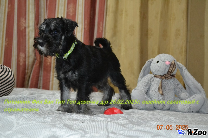 Продается щенок цвергшнауцера окраса черный с серебром, девочка, родители чемпионы породы, сдали т1 и генетические тесты, щенок яркий, веселый, ласковый, привит полностью