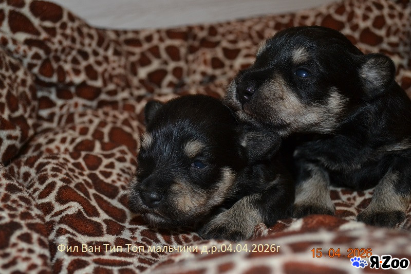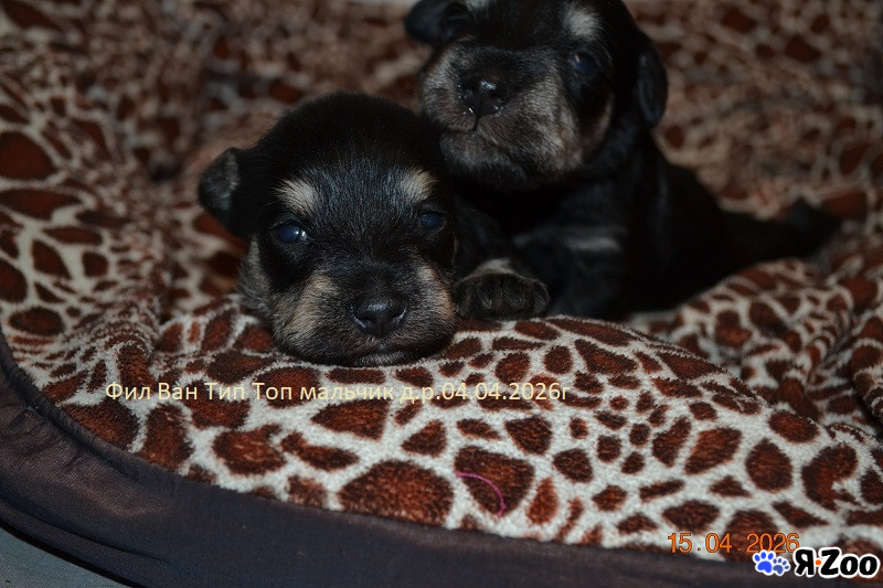 04 апреля 2026 года родился помет щенков цвергшнауцера окраса черный с серебром – три девочки, это выразительные, породные малыши с интересной родословной и тем самым