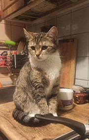 Кошка серо-коричневая в полоску, девочка, кличка китти, выпрыгнула из окна первого этажа из дома по адресу ул, руднева, д,19, к,1, телефон для связи 89052349724, вознаграждение гарантируется