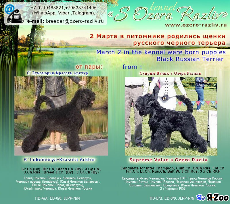 Описание Санкт-Петербург, Сестрорецк 02.03.2022 в питомнике Русских Чёрных терьеров "С Озера Разлив" родились щенки. Помет литера "В" .